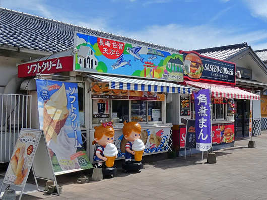 建物の前にはテイクアウトのお店もありましたが、これも昭和の匂いがプンプンするような何とも懐かしいお店でした(笑) 店頭でソフトクリームを持っている二人の子供はニックン&セイチャンでしょうか?