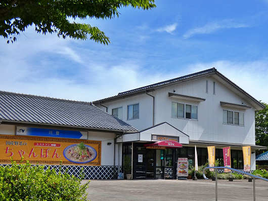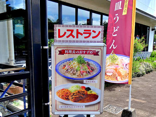 この白い建物がレストラン棟です。ここは佐賀県ですが、長崎県が近いからなのか?建物には「ちゃんぽん」の大きな文字が見えました。