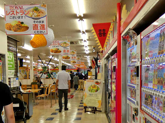 建物内はこんな感じで、手前の左側にはフードコートがあって、その先がショッピングコーナーになっていて、さらに通路を奥へ進むとレストランがありました。