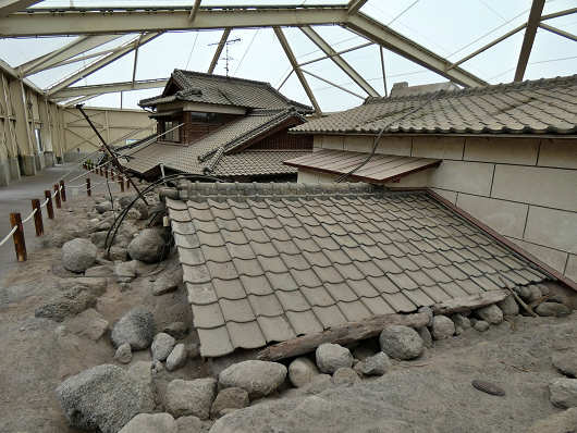 屋外の土石流による埋没家屋を見て廻ったら、ドーム状の建物内で保存されている土石流被災家屋を見に行きました。