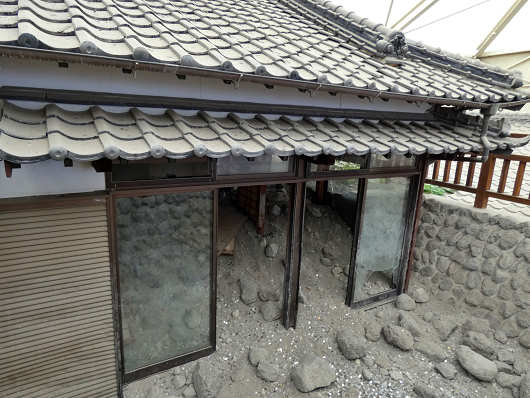 屋外には土石流に埋もれた数棟の埋没家屋がありますが、なかには老朽化によって撤去されて空き地になったところもありました。