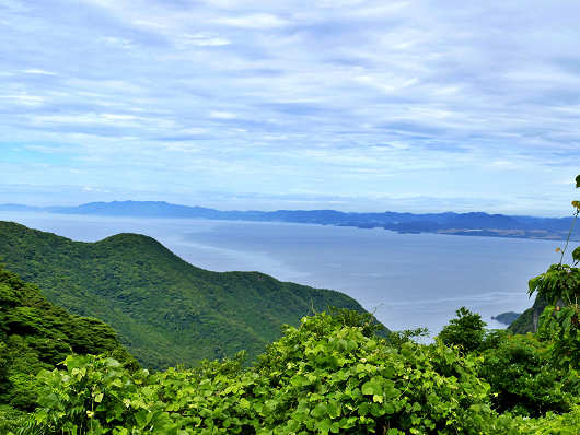 ドラゴンロードと呼ばれる急カーブに差し掛かる手前には狭い駐車帯があって、ここからは橘湾が一望できました。県道218号は終点の雲仙温泉までの間に展望台らしきものはここと棚田展望台だけなんですよね。