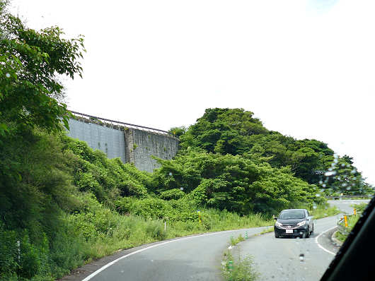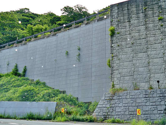 橘湾の景色を眺めて再び出発すると、前方に高い擁壁が立ち塞がるように見えてきました。