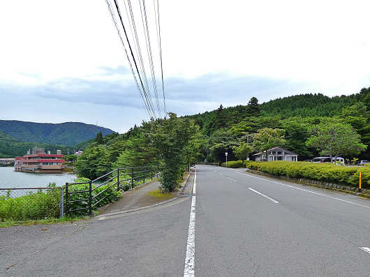 ドラゴンロードを過ぎて2ヶ所ほどカーブを曲がると県道218号は平坦路になって、左には別所ダム湖の「おしどりの池」が、そして右には「オシドリの池園地」の広い駐車場が見えてきました。ここから雲仙温泉まではもう数百mほどの距離です。