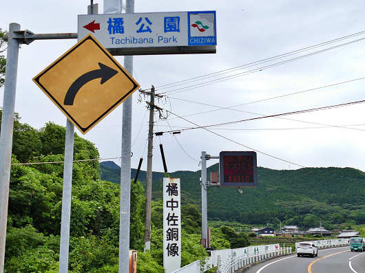 千々石観光センターから3㎞ほど走ると、道路沿いに「橘公園」と書かれた標識が見えてきたのでここを左折して車を停めました。