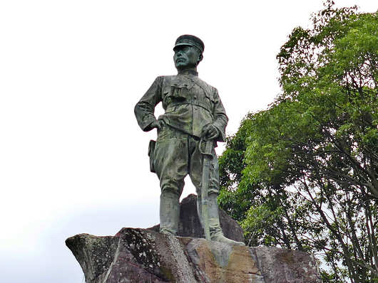 さっそく銅像の近くへ行ってみました。ここに建てられいたのは軍服姿で日本刀を持った軍人の銅像でした。