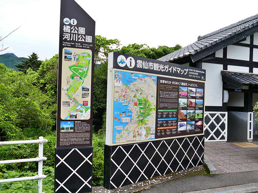 鳥居の近くにはトイレや橘公園の案内図、雲仙市の観光ガイドマップなどもありました。