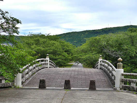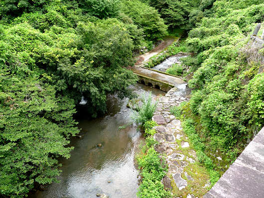 太鼓橋の途中から下を覗くときれいな川が流れていて、川岸には遊歩道もありました。ここが案内図に書かれていた河川公園なんでしょうね。ここは駐車場も広くて緑も多いところなので、夏休みには子供たちで賑わうでしょうね。