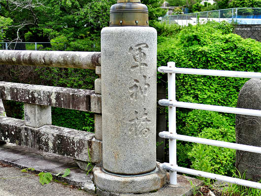 橋のたもとには「軍神橋」と刻まれた石柱が立っていました。