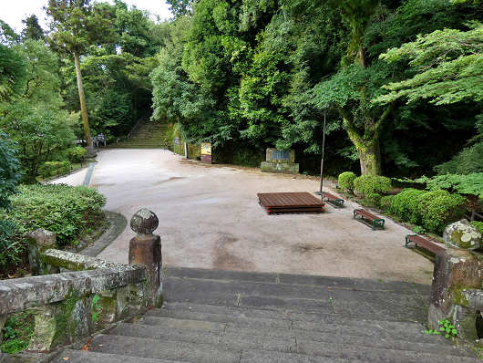 ここが公園駐車場の斜め前にある高城神社です。境内は意外と広くて数十台ほどの車が停められそうでした。ここには「高城神社参拝者駐車場」と書かれた看板がありましたが、諫早公園を訪れた人は駐車禁止なんでしょうか?