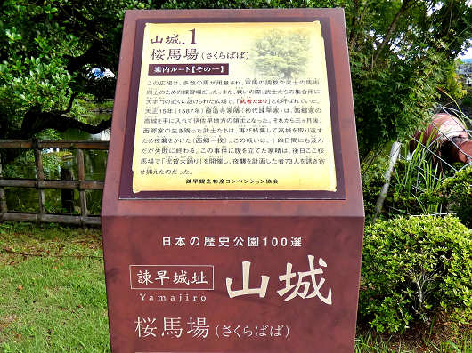 この広場は「桜馬場(さくらばば)」といって、軍馬の調教や武士の馬術の練習場だったそうです。ここには「日本の歴史公園百選」と書かれていました。諫早公園にはいったいいくつの百選があるんでしょうね?(笑)