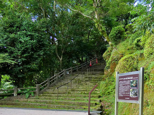 桜の馬場からこの石段を登れば諫早城の本丸跡などへ行けますが、この日も朝から30℃を超える暑さだったのと、本丸跡までどれくらいの時間がかかるのかも分からなかったのでパスしました。