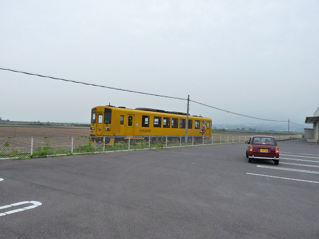 諫早市街を抜けてしばらくすると島原鉄道のかわいい電車が見えてきました。
