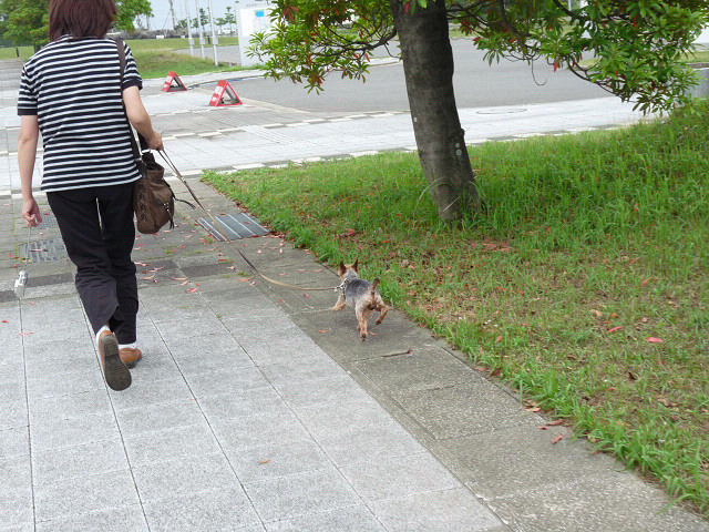 ここは敷地がものすごく広いから、とりあえず島原で最初のお散歩だよ、それにしても、りゅう君、後ろ足が変に曲がってるよ、