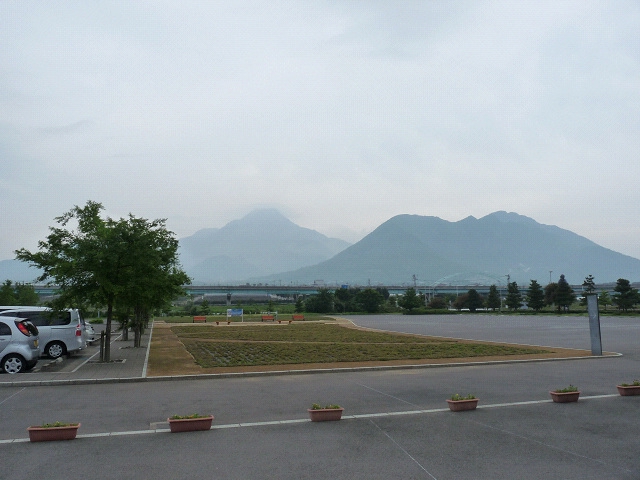 今日は天気があまり良くないけど、雲仙岳と手前に眉山が見えています、