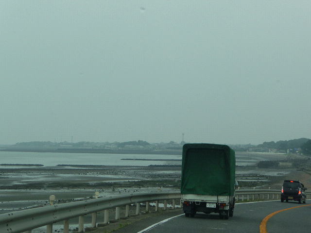 さらに島原を目指して進むと海が見えてきました、有明海だよ。