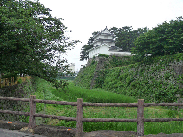 お城を離れる時にお堀の一部に菖蒲?がたくさん植えられているところがありました、もうちょっとしたら見頃だろうね、でも花菖蒲とアヤメってどこがどう違うの?