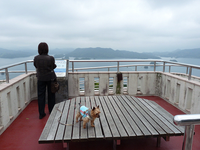 展望台からの眺めです、たくさんの島があるけど、いろは島と言って48の島があるんだって、いろは48文字から付けたのかな?今日は天気が良くないけど、晴れた日にはもっときれいだろうね。