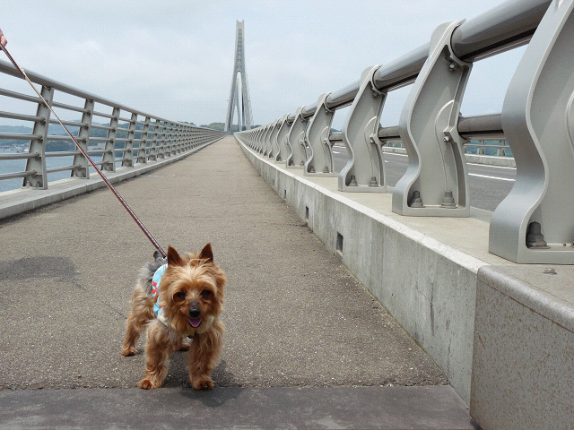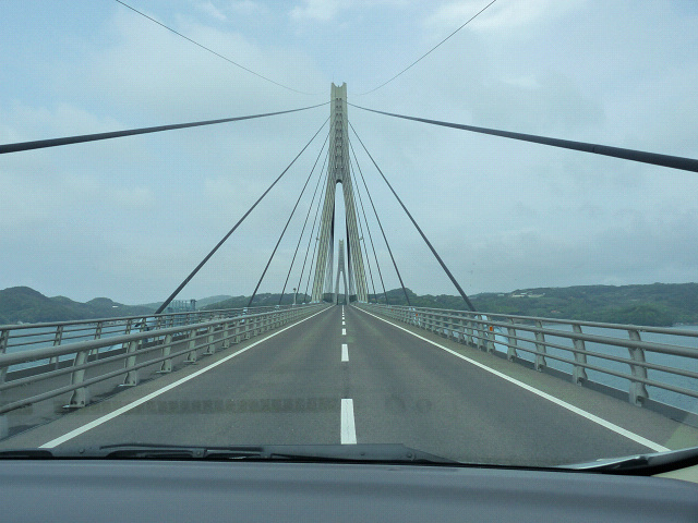 みごとな斜張橋だよね、全長1251mあるそうです、それにしてもパパぁ、センターラインの上を走ってるよ、交通ルールを守らないと駄目だよぉ、
