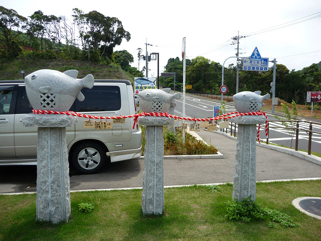 ここでは、ふぐの石灯籠が出迎えてくれます、ふぐが特産なのかな?