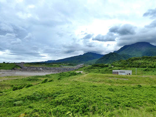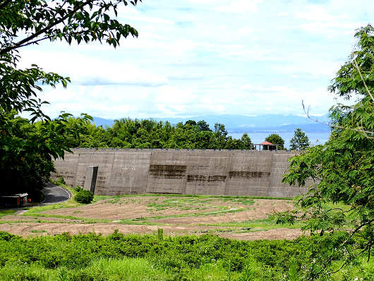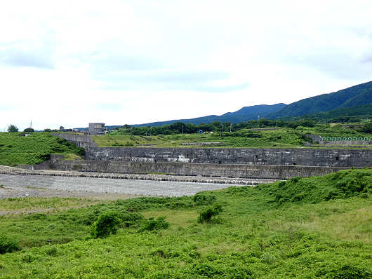 駐車場の前にある階段を登ると、長さが100m以上はありそうな堤防のようなところへ出ます。ここは見晴らしの良い展望台のような感じもしますが、砂防ダムの上なんですよね。