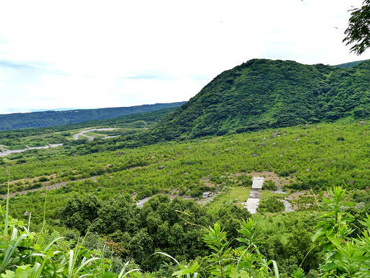 ここから上流側を眺めるとこの様な光景が広がっています。平成新山で発生した火砕流によって、このすぐ上流では報道関係者、消防団員など40数名の犠牲者が出ているんですよね。そして報道関係者が撮影ポイントとしていたところは「定点」と呼ばれて、現在は木製の白い三角錐が立てられています。この定点については当時から様々な意見が出ていたので、興味がある人は調べてみて下さいね。