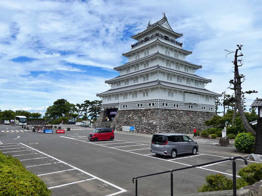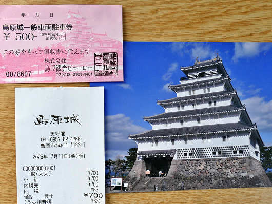 天守への入館料700円を払うと絵葉書のような紙を一枚くれましたが、入口では駐車料金500円も払っているので、合計すると1200円になります。この料金が高いのか安いのかは価値観の違いですが、一人で車に乗って入場するとかなり割高ですね(笑)