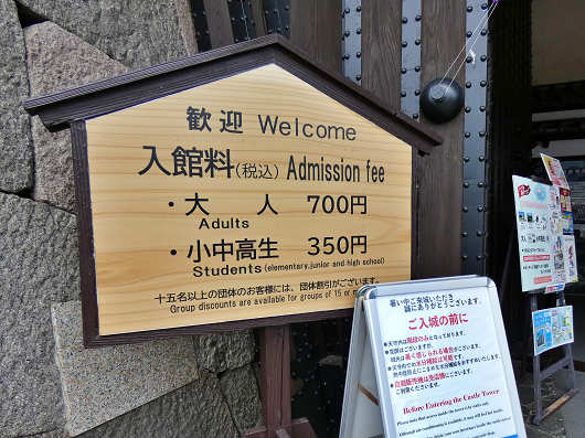 天守への入館料は大人一人が700円となっていました。