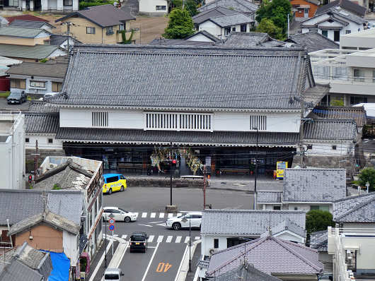 この道路の先にあるのは島原鉄道の島原駅です。駅舎は江戸時代の白壁造りの建物のような感じですが、この駅舎は島原城の大手門をモチーフにしているそうです。