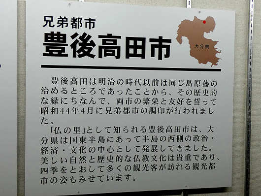 館内の撮影は自由で、4階には「兄弟都市 豊後高田市」と書かれたコーナーがありました。江戸時代の大分県豊後高田市は島原藩の飛び地だったんですね。この横には「姉妹都市 福知山市」と書かれたコーナーもありましたが、姉妹都市と兄弟都市ってどう違うんでしょうね(笑)