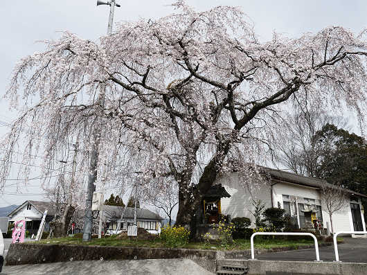 道の駅 竹田には道路を挟んだ向かいの駐車場に大きなしだれ桜の木があって、このブログでも紹介したことがありますが、今回訪れてみるとすでに見頃となっていました。5~7分咲きってところでしょうか?