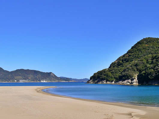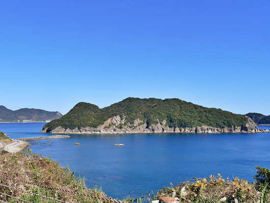 しばらくきれいな海を眺めながらゆっくり走っていると前方に島が見えきました。ここが次の目的地で野生猿が生息する「幸島(こうじま)」です。でもここは島へは渡らずに対岸から眺めるだけです。