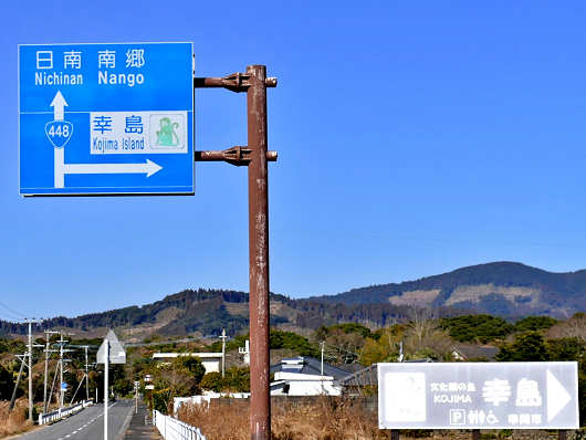 国道448号が海岸沿いから内陸部を走る道路になると「幸島」の標識が見えてきたのでここを右折しました。