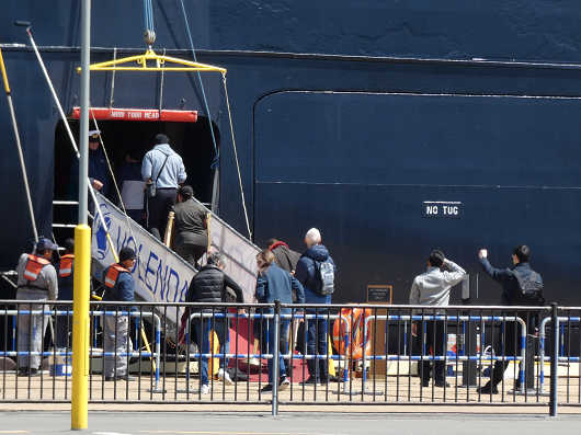 出港時間が近づいて乗船客が全員船に戻ってきたのでタラップが収納されました。いよいよ出港ですね。