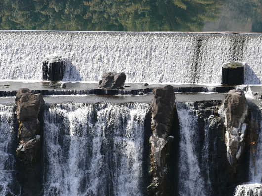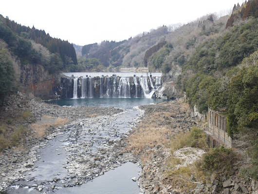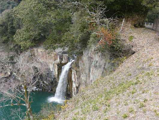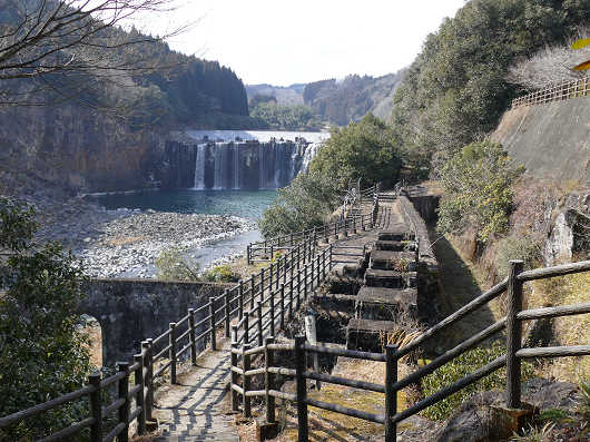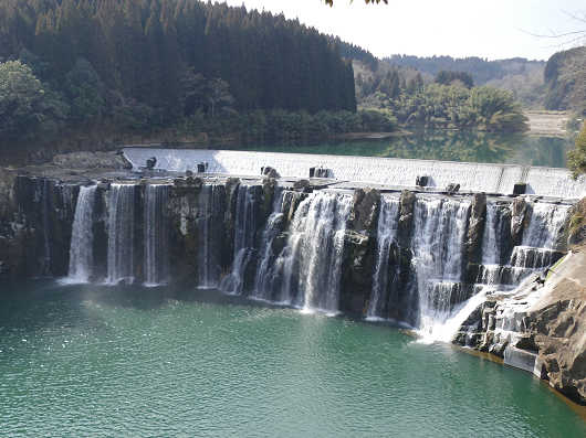 沈堕の滝は室町時代の水墨画家の雪舟が沈堕瀑布図として描いたほど見事な滝でしたが、明治時代に発電所の建設によって昔の滝の姿が無くなっていたものを昔の十三条の流れが現れるように人工的に修復しています。でも人工の滝とはいってもすぐ近くにある東洋のナイアガラといわれている 『原尻の滝』 にも負けない見事な滝ですね。