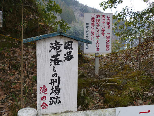 この小さな雌滝のすぐ上の道路沿いにはこんな立て看板がありました。江戸時代にはここは刑場になっていて、ここから罪人を突き落としていたと言われているんですよね。