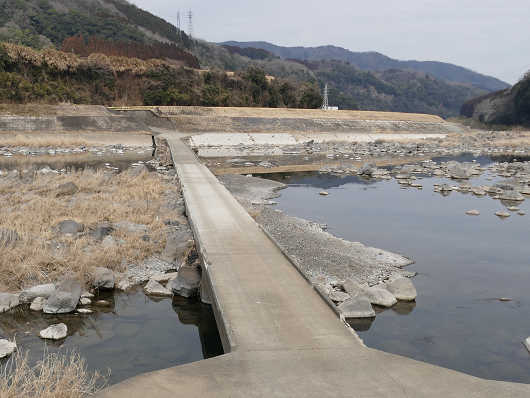 沈堕の滝を見物したら滝のすぐ下流へと向かいました。ここには大野川にかかるこんなに長い沈下橋があります。