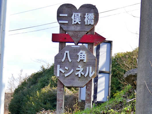 国道218号は宇城市を過ぎると下益城郡美里町に入りますが、途中から国道443号へ左折すると、すぐに道路沿いには「二俣橋」、八角トンネル」と書かれた案内板が見えてきました。