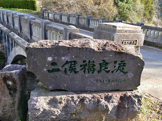 二俣渡を渡ったところにはもう一つの川の津留川が流れていて、江戸時代の1830年に架橋された石橋の「二俣福良渡(ふたまたふくらわたし)」が架かっています。