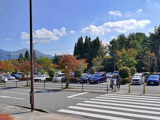 そしてこちらは帰りに撮影した第1駐車場の画像です。駐車場はほぼ満車で大賑わいでした。さすが人気観光地の湯布院ですね。
