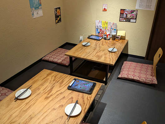 ここは3度目の訪問で、いつものように席だけ予約をして訪れましたが、今回は初めて小上がりの掘りごたつ風の席でした。足元にはホットカーペットも敷かれていてゆっくりと寛げる席でした。