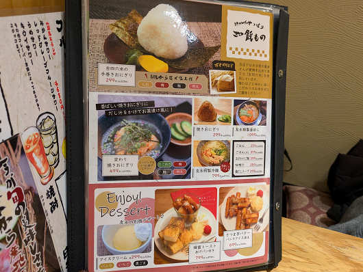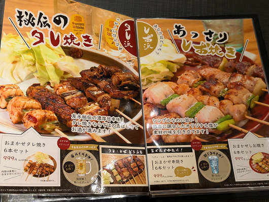 メニュー表の一部です。ここは店名に「焼とり」と付いていますが、料理の種類が豊富で焼き鳥以外にもたくさんのメニューがありました。注文はテーブルに置かれたタブレットで行いますが、写真付きのメニュー表が別にあるので、ゆっくりと料理を選べてありがたいですね。