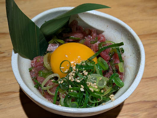 本日のおススメメニューの馬塩ユッケです。