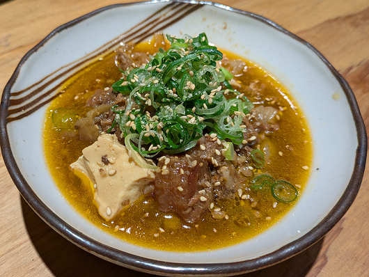 牛スジのピリ辛煮込みです。