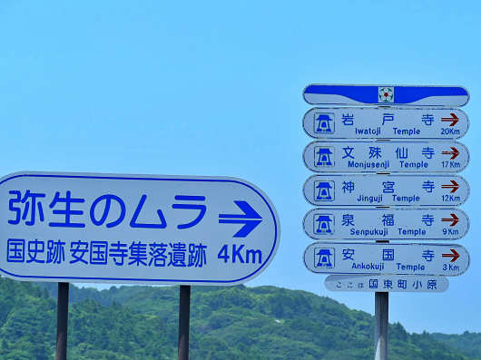 信号待ちの時に何気なく前方にある標識を見たら、お寺ばかりが5つも並んで書かれていました。国東半島は「仏の里くにさき」とも呼ばれて、数え切れないほど多くの寺院があるんですよね。