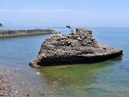 最初に見た岩は「さざれ石」のような感じでしたが、以前日向市の大海神社(おうみじんじゃ)で見た日本最大級の「さざれ石」よりも何百倍?も大きかったので、次は干潮時間を調べてからここを訪れて、この岩を直接手で触ってみたいし、金毘羅岩へも渡ってみたいですね。