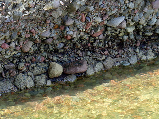 波打際もこんな感じで、小石が剝き出しになっていて、手で掴んだだけでもボロリと取れそうな石なのに、長年の風雨や波浪に晒されても崩れ落ちていないのが何とも不思議でした。