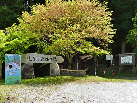 ここは事前に全く調べてなかったところですが、「遠賀川源流の地」と刻まれた大きな石碑がありました。遠賀川(おんががわ)と言えば日本海側の響灘に注ぐ一級河川で、九州では唯一の鮭が遡上する川として有名ですよね。