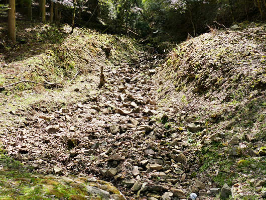 ここから見えたのは枯れ沢のような、小岩がゴロゴロした全く水の流れていない斜面だけでした。