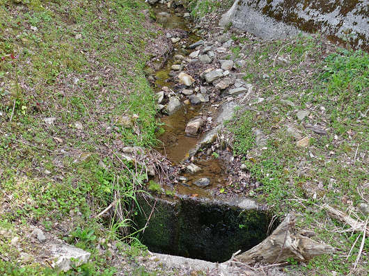 その沢もすぐ先では排水溝のようなところに水が流れ落ちて、水の流れは途切れていました。
